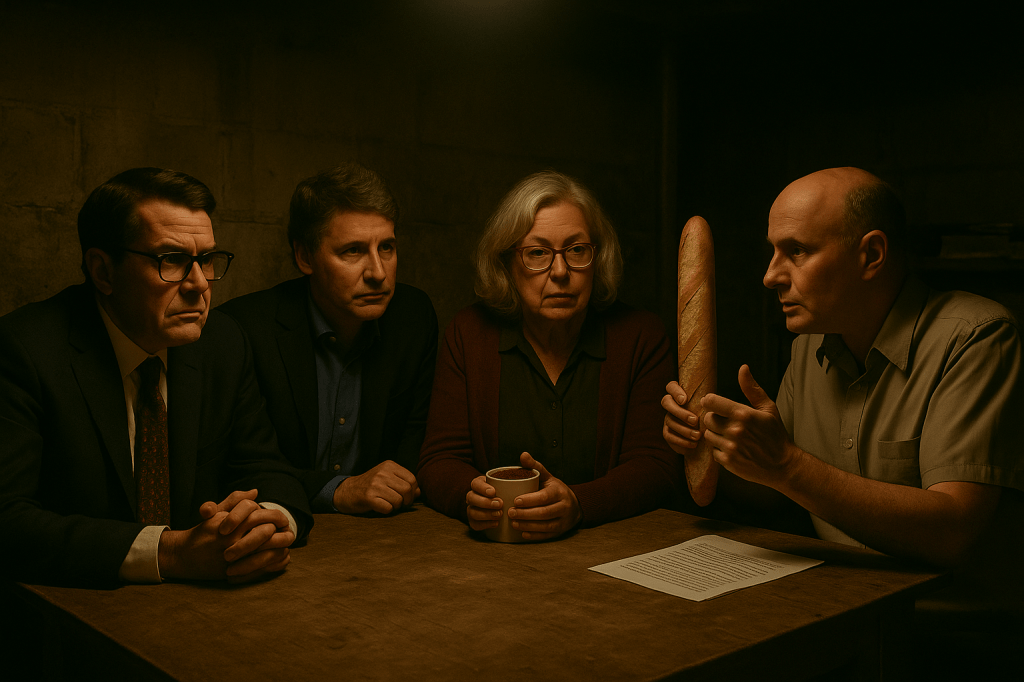 Confusion reached new heights when a lone Bloc representative wandered in mid-meeting carrying a baguette and a look of existential despair.